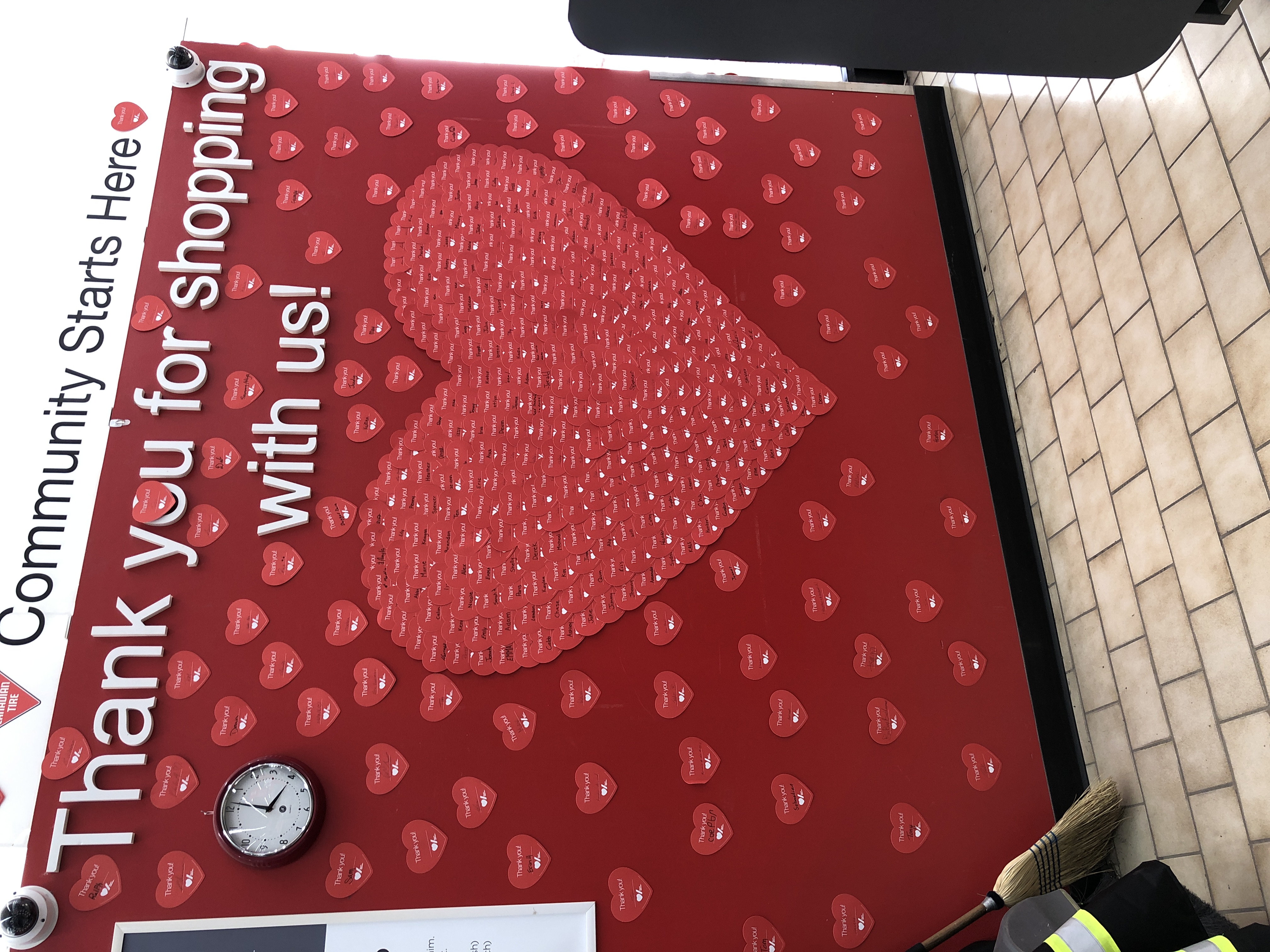 Each February, two stores in Kamloops B.C. (1441 Hillside Dr. and 944 8th St.) are covered in paper hearts as the community rallies together to face an issue impacting hundreds of thousands of Canadians every year. Each paper heart represents a $2 donation made to the Heart & Stroke Foundation of Canada.