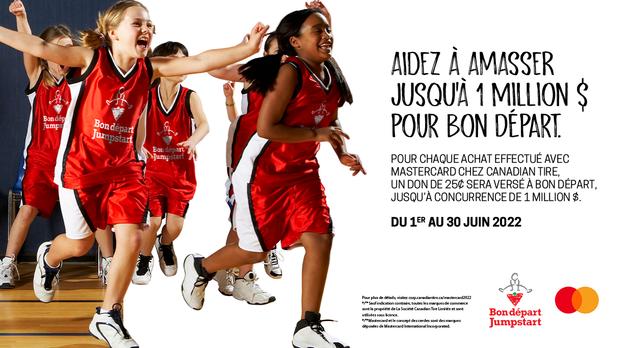 La Fondation Bon départ de Canadian Tire est un organisme caritatif national qui s’engage à faire en sorte que les enfants dans le besoin aient un accès égal aux activités sportives et récréatives. Avec un vaste réseau national de plus de 1 000 titulaires de subvention et de 289 sections locales, Bon départ aide les familles admissibles à couvrir les frais d’inscription, de transport et d’équipement, et fournit un financement à des organisations sélectionnées pour la mise en œuvre de programmes et d’infrastructures de loisirs. Depuis 2005, Bon départ a fourni plus de 2,5 millions d’occasions à des enfants canadiens de prendre part au jeu.
